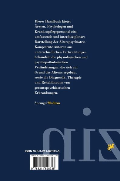 Dieses Handbuch bietet Ärzten, Psychologen und Krankenpflegepersonal eine umfassende und interdisziplinäre Darstellung der Alterspsychiatrie. Kompetente Autoren aus unterschiedlichen Fachrichtungen behandeln die physiologischen und psychaopathologischen Veränderungen, die sich auf Grund des Alters ergeben, sowie die Diagnostik, Therapie und Rehabilitation von gerontopsychiatrischen Erkrankungen.