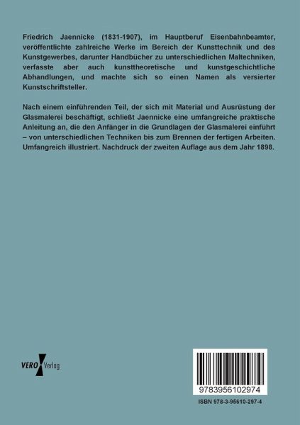 Nach einem einführenden Teil, der sich mit Material und Ausrüstung der Glasmalerei beschäftigt, schließt Jaennicke eine umfangreiche praktische Anleitung an, die den Anfänger in die Grundlagen der Glasmalerei einführt von unterschiedlichen Techniken bis zum Brennen der fertigen Arbeiten. Umfangreich illustriert. Nachdruck der zweiten Auflage aus dem Jahr 1898.