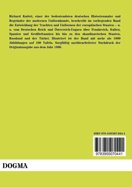 Richard Knötel, einer der bedeutendsten deutschen Historienmaler und Begründer der modernen Uniformkunde, beschreibt im vorliegenden Band die Entwicklung der Trachten und Uniformen der europäischen Staaten u. a. vom Deutschen Reich und Österreich-Ungarn über Frankreich, Italien, Spanien und Großbritannien bis hin zu den skandinavischen Staaten, Russland und der Türkei. Illustriert ist der Band mit mehr als 1000 Abbildungen auf 100 Tafeln. Sorgfältig nachbearbeiteter Nachdruck der Originalausgabe aus dem Jahr 1896.