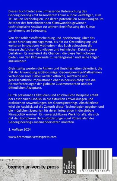 Dieses Buch bietet eine umfassende Untersuchung des Geoengineerings mit besonderem Fokus auf die vielfältigen, zum Teil neuen Technologien und deren potenziellen Auswirkungen. Im Zeitalter des fortschreitenden Klimawandels gewinnen technologische Ansätze zur aktiven Beeinflussung des Klimas zunehmend an Bedeutung. Von der Kohlenstoffabscheidung und -speicherung, über das solare Strahlungsmanagement, bis hin zur Ozeandüngung und weiteren innovativen Methoden - das Buch beleuchtet die wissenschaftlichen Grundlagen und technischen Details dieser Verfahren. Es analysiert die Chancen, die diese Technologien bieten, um den Klimawandel zu verlangsamen und seine Folgen abzumildern.Gleichzeitig werden die Risiken und Unsicherheiten diskutiert, die mit der Anwendung großvolumiger Geoengineering-Maßnahmen verbunden sind. Dabei werden ethische, rechtliche und gesellschaftliche Implikationen ebenso berücksichtigt wie die Herausforderungen der globalen Zusammenarbeit und der öffentlichen Akzeptanz.Durch praxisnahe Fallstudien und anschauliche Beispiele erhält der Leser einen Einblick in die aktuellen Entwicklungen und praktischen Anwendungen des Geoengineerings. Abschließend wird ein Ausblick auf die Zukunft dieser Technologien gegeben und die möglichen Szenarien für deren Integration in die globale Klimapolitik erörtert. Ein unverzichtbares Werk für alle, die sich mit den komplexen Herausforderungen und Potenzialen des Geoengineerings auseinandersetzen möchten.