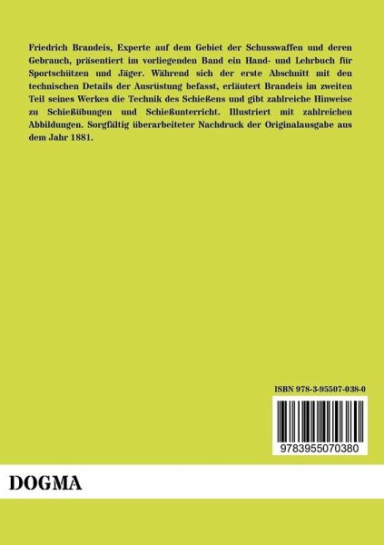 Friedrich Brandeis, Experte auf dem Gebiet der Schusswaffen und deren Gebrauch, präsentiert im vorliegenden Band ein Hand- und Lehrbuch für Sportschützen und Jäger. Während sich der erste Abschnitt mit den technischen Details der Ausrüstung befasst, erläutert Brandeis im zweiten Teil seines Werkes die Technik des Schießens und gibt zahlreiche Hinweise zu Schießübungen und Schießunterricht. Illustriert mit zahlreichen Abbildungen. Sorgfältig überarbeiteter Nachdruck der Originalausgabe aus dem Jahr 1881.