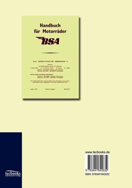 Vollständiges deutschsprachiges Handbuch für alle BSA-Motorräder aus dem Jahr 1956. Beinhaltet alle Wartungs-, Überholungs- und Repararturarbeiten.