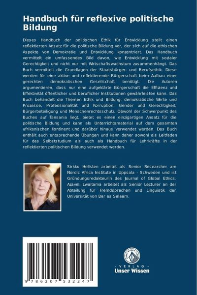 Dieses Handbuch der politischen Ethik für Entwicklung stellt einen reflektierten Ansatz für die politische Bildung vor, der sich auf die ethischen Aspekte von Demokratie und Entwicklung konzentriert. Das Handbuch vermittelt ein umfassendes Bild davon, wie Entwicklung mit sozialer Gerechtigkeit und nicht nur mit Wirtschaftswachstum zusammenhängt. Das Buch vermittelt die Grundlagen der Staatsbürger- und Berufsethik. Diese werden für eine aktive und reflektierende Bürgerschaft beim Aufbau einer gerechten demokratischen Gesellschaft benötigt. Die Autoren argumentieren, dass nur eine aufgeklärte Bürgerschaft die Effizienz und Effektivität öffentlicher und beruflicher Institutionen gewährleisten kann. Das Buch behandelt die Themen Ethik und Bildung, demokratische Werte und Prozesse, Professionalität und Korruption, Gender und Gerechtigkeit, Bürgerbeteiligung und Menschenrechtsschutz. Obwohl der Schwerpunkt des Buches auf Tansania liegt, bietet es einen einzigartigen Ansatz für die politische Bildung und kann als Unterrichtsmaterial auf dem gesamten afrikanischen Kontinent und darüber hinaus verwendet werden. Das Buch enthält auch entsprechende Übungen und kann daher sowohl als Leitfaden für das Selbststudium als auch als Handbuch für Lehrkräfte in der reflektierten politischen Bildung verwendet werden.