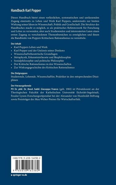Dieses Handbuch bietet einen verlässlichen, systematischen und umfassenden Zugang einerseits zu Leben und Werk Karl Poppers, andererseits zur breiten Wirkung des Philosophen in Wissenschaft, Politik und Gesellschaft.