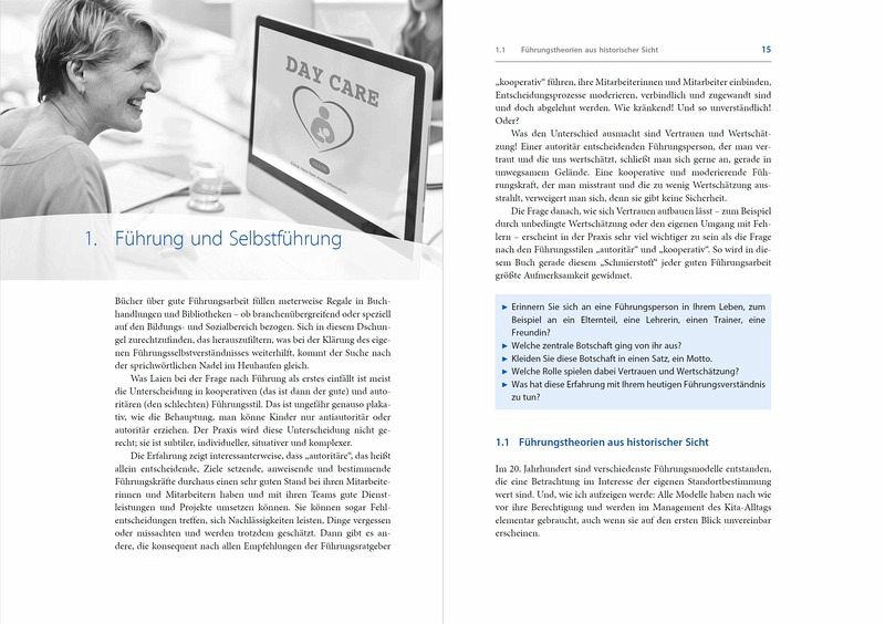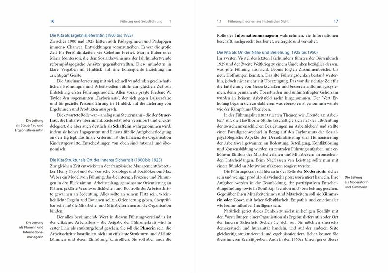 In der überarbeiteten und erweiterten Neuausgabe nimmt die Autorin die Themen Kita leiten und beraten in den Fokus. Umfassend, kompetent und ansprechend beschreibt sie, wie Führungskräfte Kitas professionell, qualitätsbewusst und zukunftsorientiert führen und beraten. Die Themen reichen von der eignen Führungspersönlichkeit, die Führung der Mitarbeitenden, der Steuerung von Teamprozessen über die Organisation Kita und ihre Einbettung in den gesellschaftlichen Kontext bis zu ausführlichen Informationen speziell für Beratende. Das Buch schließt mit einem Ausblick auf das zukunftsweisende Thema kollegiale Führung. Theoretisch fundiert und praxisorientiert!
