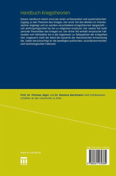 Dieses Handbuch bietet erstmals einen umfassenden und systematischen Zugang zu den Theorien des Krieges. Der erste Teil des Werkes ist interdisziplinär angelegt und es werden verschiedene Kriegstheorien dargestellt - von anthropologischen bis hin zu religiösen Ansätzen. Der zweite Teil stellt zentrale Theoretiker des Krieges vor. Der dritte Teil enthält empirische Fallstudien vom Mittelalter bis in die Gegenwart zu Teilaspekten der Kriegstheorien. Insgesamt stellt der Band die Dynamik der theoretischen Entwicklung dar. Dabei berücksichtigt er die jeweiligen politischen, sozioökonomischen und technologischen Faktoren.