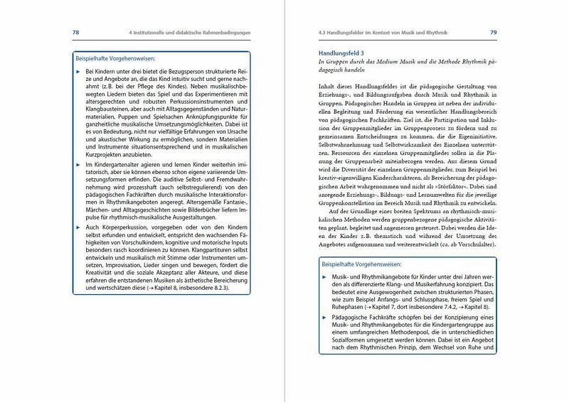 Musik und Rhythmik stellen entwicklungsrelevante Bildungsbereiche dar. Angebote mit Musik, Bewegung, Sprache und Materialien geben wertvolle Impulse zur Entwicklung eines Kindes. Dieses Handbuch vermittelt das dazu grundlegende und weiterführende Wissen in Theorie und Praxis. Es beschreibt, wie Musik und Rhythmik konzeptionell in die Kita integriert werden können. Grundlagenwissen in den Bereichen Entwicklungs- und Musikpsychologie, die Vorstellung von Musikkonzeptionen sowie der methodisch-didaktische Einsatz von Bildungsangeboten machen das Buch komplett.