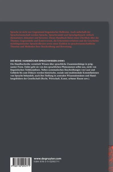 Sprache ist nicht nur Gegenstand linguistischer Reflexion. Auch außerhalb der Sprachwissenschaft werden Sprache, Sprachwandel und Sprachgebrauch vielfach thematisiert, diskutiert und bewertet. Das Handbuch Sprache im Urteil der Öffentlichkeit bietet einen Überblick über die Themen, Gegenstände und Kontroversen, die Erkenntnisverfahren und die Geschichte nichtlinguistischer Sprachreflexion sowie einen Einblick in sprachwissenschaftliche Theorien und Methoden ihrer Analyse und Beschreibung.