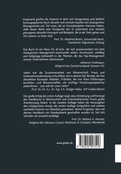 Prof. Dr. Harald Hungenberg ist Inhaber des Lehrstuhls für Allgemeine Betriebswirtschaftslehre, insbesondere Unternehmensführung, an der Universität Erlangen-Nürnberg und Gastprofessor an der ENPC in Paris. Dr. Jürgen Meffert ist Director der Unternehmensberatung McKinsey & Company Inc. Seine gegenwärtigen Tätigkeitsschwerpunkte sind Unternehmensstrategien, Organisation, Innovations- und Technologiemanagementthemen sowie operative Verbesserungsprogramme international tätiger Unternehmen der High Tech-, Telekommunikations- und Automobilbranchen.