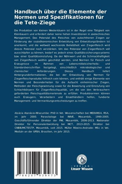 Die Produktion von kleinen Wiederkäuern ist in der Regel eine Tätigkeit von Kleinbauern und erfordert daher keine hohen Investitionen in zootechnisches Management. Das Potenzial des Fleisches von autochthonen Ziegen zur Förderung der sozioökonomischen Entwicklung von Entwicklungsländern ist anerkannt, und die weltweit wachsende Beliebtheit von Ziegenfleisch wird dieses Potenzial noch verstärken. Um das Potenzial von Ziegenfleisch voll ausschöpfen zu können, bedarf es jedoch eines Qualitätssicherungssystems bzw. einer Qualitätseinstufung. Da der Nährwert und die Schmackhaftigkeit von Ziegenfleisch weithin geschätzt werden, sind Normen für Fleisch und Erzeugnisse im Rahmen von Lebensmittelsicherheits- und Standardvorschriften festgelegt, einschließlich mikrobiologischer und chemischer Anforderungen. Dieses Handbuch liefert Hintergrundinformationen, die bei der Entwicklung von Normen für Ziegenfleischprodukte hilfreich sein können, und enthält einige Elemente von Normen und Besonderheiten für die Aufzucht einheimischer Ziegen, Methoden der Fleischgewinnung sowie für die Bewertung und Einstufung von Schlachtkörpern für Ziegenfleischqualität, um die von den Verbrauchern geforderten Fleischqualitätsmerkmale zu erfüllen. Produktnormen können auch Erzeugern, Verarbeitern und Einzelhändlern helfen, fundierte Management- und Vermarktungsentscheidungen zu treffen.