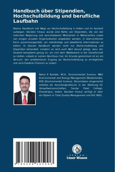 Dieses Handbuch soll Wege zur Hochschulbildung in Indien und im Ausland aufzeigen. Darüber hinaus wurde eine Reihe von Stipendien, die von der indischen Regierung und verschiedenen Ministerien in Maharashtra sowie von einigen privaten Organisationen angeboten werden, in übersichtlicher Form zusammengestellt, um vollständige und detaillierte Informationen zu liefern. In diesem Handbuch werden nicht nur Hochschulbildung und Stipendien behandelt, sondern es wird auch Wert darauf gelegt, dass der Student kompetent genug ist, um sich dem Wettbewerb in der Gesellschaft zu stellen, sobald er seinen Abschluss hat. Im Grunde genommen ist es ein Versuch, den problemlosen Zugang zur Hochschulbildung zu ermöglichen und verschiedene Chancen zu nutzen.