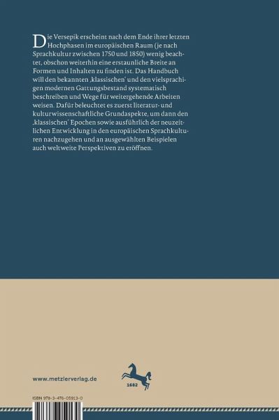 Die klassische Gattung des Versepos von Milton bis Klopstock ist nach dem Ende ihrer letzten Hochphasen im europäischen Raum (je nach Sprachkultur zwischen 1750 und 1850) wenig beachtet, obschon weiterhin eine erstaunliche Breite an Formen und Inhalten zu finden ist. Das Handbuch will den bekannten klassischen und vor allem den modernen, vielsprachigen Bestand von Versepik interdisziplinär und systematisch beschreiben und dabei zugleich Wege für weitergehende Arbeiten weisen. Ein erster Teil des Handbuchs beleuchtet allgemeine literatur- und kulturwissenschaftliche Aspekte. Ein weiterer Teil rekapituliert die 'klassischen' Epochen von der Antike bis ins 17. Jahrhundert. Der dritte Teil widmet sich dezidiert ausführlicher dem bis heute wohl größten offenen Feld, nämlich der Weiterentwicklung der europäischen Versepiken in den wichtigsten Sprachkulturen (v.a. Romania, anglo-amerikanischer, deutschsprachiger, slavischer Raum) seit der vorgeblichen Ablösung der alten Gattung durch die 'modernere' Prosa bzw. Romanliteratur.