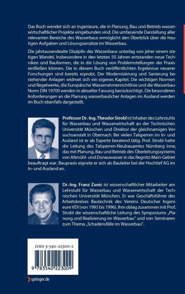 Die jahrtausendealte Disziplin des Wasserbaus unterlag von jeher einem stetigen Wandel. Insbesondere in den letzten 50 Jahren entstanden neue Techniken und Bauformen, die in die Lösung von Problemstellungen der Praxis einfließen können. Die in diesem Buch veröffentlichten Ergebnisse neuerer Forschungen sind bereits erprobt. Der Modernisierung und Sanierung bestehender Anlagen widmet sich ein eigenes Kapitel. Die wichtigen Normen und Regelwerke, die Europäische Wasserrahmenrichtlinie und die Wasserbau-Norm DIN 19700 werden in aktueller Fassung berücksichtigt. Die besonderen Anforderungen an die Planung wasserbaulicher Anlagen im Ausland werden im Buch ebenfalls dargestellt.