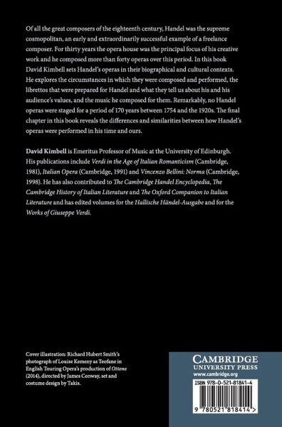 Of all the great composers of the eighteenth century, Handel was the supreme cosmopolitan, an early and extraordinarily successful example of a freelance composer. For thirty years the opera-house was the principal focus of his creative work and he composed more than forty operas over this period. In this book, David Kimbell sets Handel's operas in their biographical and cultural contexts. He explores the circumstances in which they were composed and performed, the librettos that were prepared for Handel, and what they tell us about his and his audience's values and the music he composed for them. Remarkably no Handel operas were staged for a period of 170 years between 1754 and the 1920s. The final chapter in this book reveals the differences and similarities between how Handel's operas were performed in his time and ours.