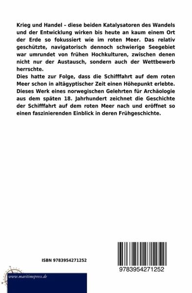 Dies hatte zur Folge, dass die Schifffahrt auf dem roten Meer schon in altägyptischer Zeit einen Höhepunkt erlebte. Dieses Werk eines norwegischen Gelehrten für Archäologie aus dem späten 18. Jahrhundert zeichnet die Geschichte der Schifffahrt auf dem roten Meer nach und eröffnet so einen faszinierenden Einblick in deren Frühgeschichte.