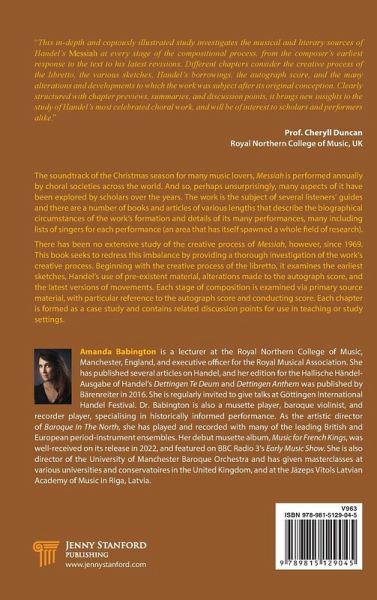 1. The Libretto 2. Sketches 3. Pre-existent Material 4. The Autograph: Method and Construction 5. Autograph Alterations 6. Later Revisions 7. General Conclusion Appendix A: Libretto Sources Appendix A: Sketches pertaining to Messiah Appendix C/1: For unto us/Nò, di voi non vo' fidarmi Appendix C/2: All we, like sheep/Sò per prova Appendix C/3: His yoke is easy/Quel fior che all'alba ride Appendix C/4: And He shall purify/L'occaso ha nell'aurora Appendix D: Rejoice Appendix E: Alternative Movement Settings Bibliography