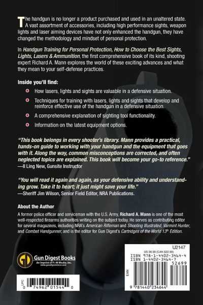 Handgun Training for Personal Protection is the definitive guide for selecting and training with lights, sights, lasers and ammunition for the modern defensive handgun. Author Richard Mann helps you understand how to properly outfit a handgun to optimize its defensive potential. Perhaps even more importantly, he describes how to train with this optimized handgun in order to have the best chance of survival in a lethal encounter. Handgun Training for Personal Protection will help you: * Understand how lasers, lights and sights are valuable in a defensive situation. * Learn techniques for training with lasers, lights and sights that develop and reinforce effective use of the handgun in a defensive situation. * Learn how lasers, lights, sights and ammunition work. * Learn about available equipment options. This volume is the essential laser, light and ammunition defensive handgun training manual for anyone who owns a handgun.
