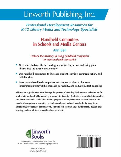 This resource guides educators through the process of selecting the hardware and software for students to use handheld computers necessary to listen to eBooks, to research websites, and to use videos and audio books. The author's purpose is to help educators teach students to use handheld computers to learn the curriculum and meet national standards. By using these portable technologies in the classroom, students will increase their achievement, deepen their learning, and enrich their educational environment.