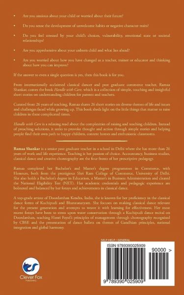 Are you anxious about your child or worried about their future? Do you sense the development of unwelcome habits or negative character traits? Do you feel stressed by your child's choices, vulnerability, emotional state or societal relationships? Are you apprehensive about your unborn child and what lies ahead? Are you worried about how you have changed as a teacher, trainer or educator and thinking about how you can improve? If the answer to even a single question is yes, then this book is for you. From internationally acclaimed classical dancer and post graduate commerce teacher, Ramaa Shankar, comes the book Handle with Care, which is a collection of simple, touching and insightful short stories on understanding children for parents and teachers. Curated from 26 years of teaching, Ramaa shares 26 short stories on diverse themes of life and issues and challenges faced while growing up. This book sheds light on the little things that matter to raise children in these complicated times. Handle with Care is a relaxing read about the complexities of raising and teaching children. Instead of preaching solutions, it seeks to provoke thought and action through simple stories and helping people find their own path to happy children, content homes and enthusiastic classrooms.
