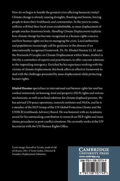 How do we begin to handle the greatest crisis affecting humanity today? Climate change is already causing droughts, flooding, and famine that are forcing people to leave their livelihoods and communities. In the years to come, millions will find their local areas uninhabitable, as mass displacement of people reaches disastrous levels. Handling Climate Displacement explains how climate change has become recognized as a human rights concern, and how human rights are key to managing the crisis. Local authorities and populations increasingly call for guidance in the absence of an internationally recognized framework. Drafted in 2013 by a committee of experts and practitioners, Hassine uses the Peninsula Principles on Climate Displacement within States to offer concrete solutions to the impending emergency. Enriched by the author's experience working with the victims of climate displacement, this book offers an effective framework to deal with the challenges presented by mass displacement while protecting human rights.