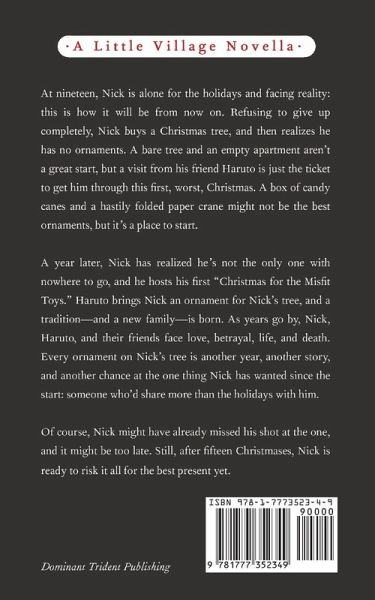At nineteen, Nick is alone for the holidays and facing reality: this is how it will be from now on. Refusing to give up completely, Nick buys a Christmas tree, and then realizes he has no ornaments. A bare tree and an empty apartment aren't a great start, but a visit from his friend Haruto is just the ticket to get him through this first, worst, Christmas. A box of candy canes and a hastily folded paper crane might not be the best ornaments, but it's a place to start. A year later, Nick has realized he's not the only one with nowhere to go, and he hosts his first "Christmas for the Misfit Toys." Haruto brings Nick an ornament for Nick's tree, and a tradition-and a new family-is born. As years go by, Nick, Haruto, and their friends face love, betrayal, life, and death. Every ornament on Nick's tree is another year, another story, and another chance at the one thing Nick has wanted since the start: someone who'd share more than the holidays with him. Of course, Nick might have already missed his shot at the one, and it might be too late. Still, after fifteen Christmases, Nick is ready to risk it all for the best present yet.