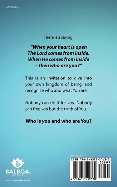 There is a saying: "When your heart is open The Lord comes from inside. When He comes from inside - then who are you?" This is an invitation to dive into your own kingdom of being, and recognize who and what You are. Nobody can do it for you. Nobody can free you but the truth of You. Who is you and who are You?