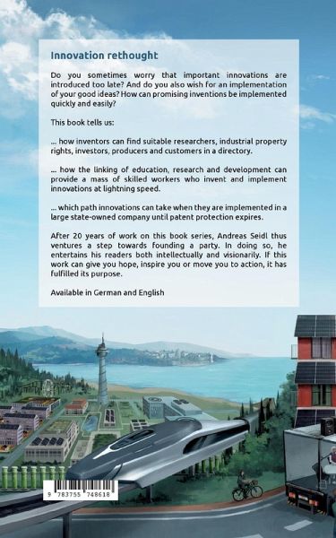 Innovation rethoughtDo you sometimes worry that important innovations are introduced too late? And do you also wish for an implementation of your good ideas? How can promising inventions be implemented quickly and easily?This book tells us:... how inventors can find suitable researchers, industrial property rights, investors, producers and customers in a directory.... how the linking of education, research and development can provide a mass of skilled workers who invent and implement innovations at lightning speed.... which path innovations can take when they are implemented in a large state-owned company until patent protection expires.After 20 years of work on this book series, Andreas Seidl thus ventures a step towards founding a party. In doing so, he entertains his readers both intellectually and visionarily. If this work can give you hope, inspire you or move you to action, it has fulfilled its purpose.Available in German and English