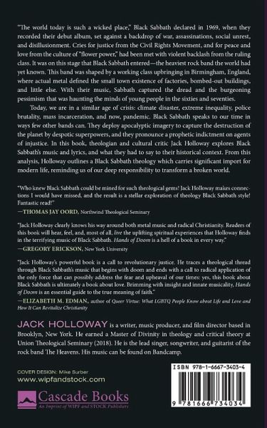 ""The world today is such a wicked place,"" Black Sabbath declared in 1969, when they recorded their debut album, set against a backdrop of war, assassinations, social unrest, and disillusionment. Cries for justice from the Civil Rights Movement, and for peace and love from the culture of ""flower power,"" had been met with violent backlash from the ruling class. It was on this stage that Black Sabbath entered--the heaviest rock band the world had yet known. This band was shaped by a working class upbringing in Birmingham, England, where actual metal defined the small town existence of factories, bombed-out buildings, and little else. With their music, Sabbath captured the dread and the burgeoning pessimism that was haunting the minds of young people in the sixties and seventies. Today, we are in a similar age of crisis: climate disaster, extreme inequality, police brutality, mass incarceration, and now, pandemic. Black Sabbath speaks to our time in ways few other bands can. They deploy apocalyptic imagery to capture the destruction of the planet by despotic superpowers, and they pronounce a prophetic indictment on agents of injustice. In this book, theologian and cultural critic Jack Holloway explores Black Sabbath's music and lyrics, and what they had to say to their historical context. From this analysis, Holloway outlines a Black Sabbath theology which carries significant import for modern life, reminding us of our deep responsibility to transform a broken world.