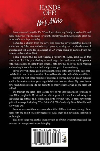 I was born and raised in KY. When I was eleven my family moved to CA and made numerous trips back and forth until I finally made the decision to plant my roots in CA to this present day. I attended a church from the day I was born that my grandfather pastored and where my father was a missionary. I grew up serving the church where ever I attended and still do today in a church in CA where I have co-pastored with my present husband since 2009. I have a saying that I'm not religious I just love the Lord. You'll see in this book how I lived for years hiding so much anger, hurt and abuse until a pastor's wife counseled me to share it with others. That's how this book was born. Writing and reading it has helped me heal and gave me part of my testimony. I lived a very sheltered good life within the walls of the church until I got married the first time. It was then that I learned how the other side of the world lived. Within the first three months of marriage I learned how an addict behaves and for the next seventeen years engulfed destruction and abuse. My book shares how much torment one life can bring to so many others as well as the scars left behind. But through the years I also learned how to run into the arms of Jesus and to trust Him completely. He blessed me with a great voice and I started using it at the tender age of three and I still use it now to worship Him. To date I have wrote quite a few songs, including; "The Painter" & "God's Already Done What He said He Would Do." I cannot leave out there were seven beautiful children that went through these years with me and it was only because of God, them and my family that pulled us through. This book takes you on that journey with us of what we experienced and the moment our escape route came into play.