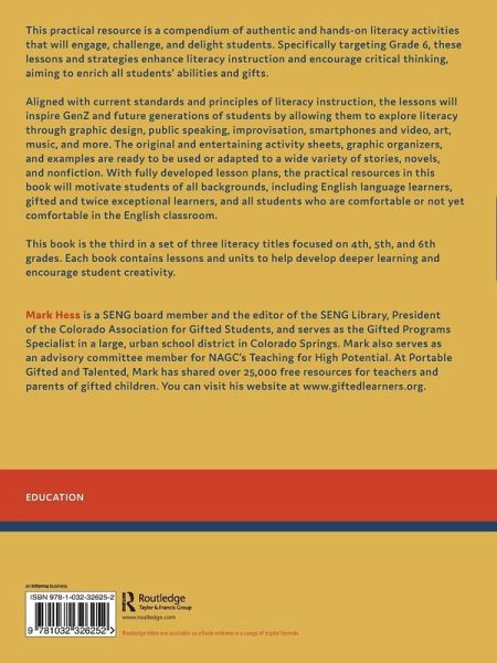 This practical resource is a compendium of authentic and hands-on literacy activities that will engage, challenge, and delight students. Specifically targeting Grade 6, these lessons and strategies enhance literacy instruction and encourage critical thinking, aiming to enrich all studentsâ abilities and gifts.