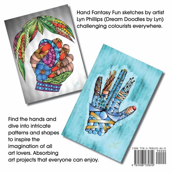 Hand Fantasy Fun sketches by artist Lyn Phillips (Dream Doodles by Lyn) - challenging colourists everywhere. Find the hands and dive into intricate patterns and shapes to inspire the imagination of all art lovers. Absorbing and interactive art projects that everyone can enjoy. This book follows on in the spirit of "Funky Fish 'N Friends"