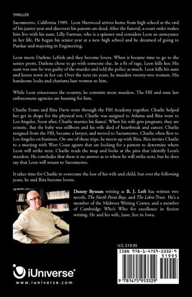 Sacramento, California 1989. Leon Sherwood arrives home from high school at the end of his junior year and discovers his parents are dead. After the funeral, a court order makes him live with his aunt, Lilly Furman, who is a spinster and considers Leon an annoyance in her life. He began his senior year at a new high school and he dreamed of going to Purdue and majoring in Engineering. Leon meets Darlene Leftish and they become lovers. When it became time to go to the senior prom, Darlene chose to go with someone else. In a fit of rage, Leon kills her. His aunt was sure he was guilty of the murder and told the police as much. Leon kills his aunt and leaves town in her car. Over the next six years, he murders twenty-one women. His handsome looks and charisma lure women to him. While Leon crisscrosses the country, he commits more murders. The FBI and state law enforcement agencies are hunting for him. Charlie Evans and Rita Davis went through the FBI Academy together. Charlie helped her get in shape for the physical test. Charlie was assigned to Atlanta and Rita went to Los Angeles. Soon after, Charlie marries his fiancé. When his wife gets pregnant, they are ecstatic. But the baby was stillborn and his wife died of heartbreak and cancer. Charlie resigned from the FBI, became a lawyer, and moved to Sacramento. Charlie often flew to Los Angeles on business. On one of those trips, he meets up with Rita. Rita invites Charlie to a meeting with West Coast agents that are looking for a pattern to determine where Leon will strike next. Charlie reads the map and looks at the pins that identify Leon's murders. He concludes that there is no answer as to where he will strike next, but he does say that Leon will return to Sacramento. It takes time for Charlie to overcome the loss of his wife and child, but over the following years, he and Rita become lovers.