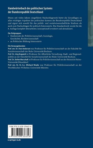 Dieses seit vielen Jahren eingeführte Nachschlagewerk bietet die Grundlagen zu allen wichtigen Aspekten des politischen Systems der Bundesrepublik Deutschland und eignet sich sowohl für das politikwissenschaftliche Studium als auch zum Nachschlagen für politisch Interessierte. Das Standardwerk wurde für die 8. Auflage komplett überarbeitet, konzeptionell erweitert und aktualisiert.