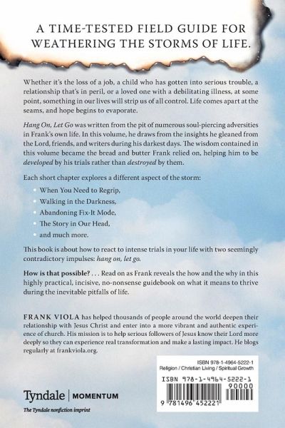 Bestselling author Frank Viola writes a time-tested field guide to weathering the storms of life. Whether it’s the loss of a job, a child who has gotten into serious trouble, a marriage that’s in peril, or a loved one with a debilitating illness, at some point, something in our lives will strip us of all control. Life comes apart at the seams, and hope begins to evaporate. Hang On, Let Go was written from the pit of numerous soul-piercing adversities in Frank’s own life. In this volume, he draws from the insights he gleaned from the Lord, friends, and writers during his darkest days. The wisdom contained in this volume became the bread and butter Frank relied on, helping him to be developed by his trials rather than destroyed by them. Each short chapter explores a different aspect of the storm: When You Need to Regrip, Walking in the Darkness, Abandoning Fix-It Mode, The Story in Our Head, Just Breathe, and much more. This book is about how to react to intense trials in your life with two seemingly contradictory impulses: hang on, let go. How is that possible? . . . Read on. Frank explores the how and the why in this highly practical, incisive, no-nonsense guidebook on how to thrive during the inevitable pitfalls of life.