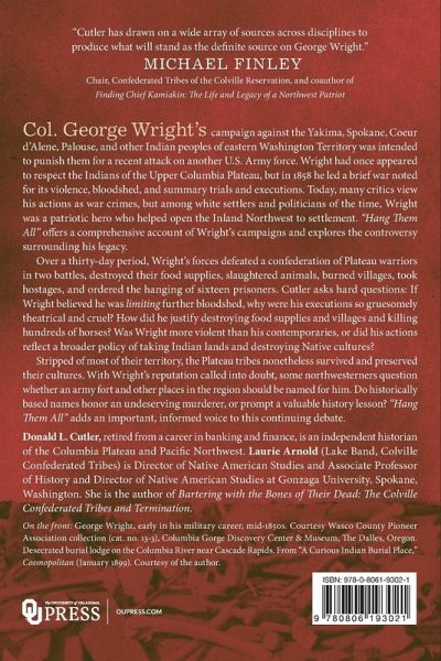 Col. George Wright's campaign against the Yakima, Spokane, Coeur d'Alene, Palouse, and other Indian peoples of eastern Washington Territory was intended to punish them for a recent attack on another U.S. Army force. Wright had once appeared to respect the Indians of the Upper Columbia Plateau, but in 1858 he led a brief war noted for its violence, bloodshed, and summary trials and executions. Today, many critics view his actions as war crimes, but among white settlers and politicians of the time, Wright was a patriotic hero who helped open the Inland Northwest to settlement. "Hang Them All" offers a comprehensive account of Wright's campaigns and explores the controversy surrounding his legacy. Over thirty days, Wright's forces defeated a confederation of Plateau warriors in two battles, destroyed their food supplies, slaughtered animals, burned villages, took hostages, and ordered the hanging of sixteen prisoners. Seeking the reasons for Wright's turn toward mercilessness, Cutler asks hard questions: If Wright believed he was limiting further bloodshed, why were his executions so gruesomely theatrical and cruel? How did he justify destroying food supplies and villages and killing hundreds of horses? Was Wright more violent than his contemporaries, or did his actions reflect a broader policy of taking Indian lands and destroying Native cultures? Stripped of most of their territory, the Plateau tribes nonetheless survived and preserved their cultures. With Wright's reputation called into doubt, some northwesterners question whether an army fort and other places in the region should be named for him. Do historically based names honor an undeserving murderer, or prompt a valuable history lesson? In examining contemporary and present-day treatments of Wright and the incident, "Hang Them All" adds an important, informed voice to this continuing debate.