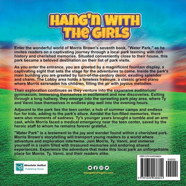 Enter the wonderful world of Morris Brown's seventh book, "Water Park," as he invites readers on a captivating journey through a local park teeming with rich history and cherished memories. Situated conveniently close to their house, this park became a beloved destination on their list of park visits. As you enter the entrance, you are greeted by a magnificent fountain display, a captivating sight that sets the stage for the adventures to come. Inside the park's main building you are greeted by turn-of-the-century decor, exuding splendor and charm. The Lobby area holds a timeless treasure, a classic grand piano where Morris serenades his children, filling the air with joyous melodies. Their exploration continues as they venture into the expansive auditorium/gymnasium, immersing themselves in excitement and new discoveries. Exiting through a long hallway, they emerge into the sprawling park play area, where Ty and Vanni lose themselves in endless play well into the evening hours. Adjacent to the park lies the teen center, a hub of summer camps and endless fun for kids, adding to the park's allure. Amidst the fun-filled memories, there were also moments of sadness. Ty's younger years brought a tumble and an arm cast, while Morris faced a medical emergency near the teen center, saved by the heroic staff to whom he remains forever grateful. "Water Park" is a testament to the joy and wonder found within a cherished park. Morris Brown's storytelling will transport young readers to a world where adventure and exploration intertwine. Join Morris, Ty, Vanni, and immerse yourself in a realm filled with treasured memories and enduring shared experiences. Experience the adventure that make this local park an unforgettable place for Morris, Ty, Vanni, and their readers alike.