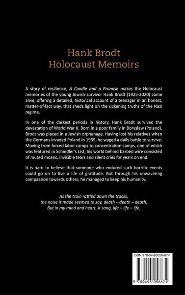A teenager living in a Jewish orphanage. Nazis marching into his Polish village in 1939. How will the 14-year-old boy survive the brutalities on his own and keep his humanity? This shocking memoir of Holocaust Survivor Hank Brodt (1925-2020) offers a personal glimpse into the inner world of a boy under the Nazi regime, shedding light on sickening truths in an honest, matter-of-fact way. Hank Brodt lived through one of the darkest periods of human history and survived the devastation of World War II. Born into a poor family in Boryslaw (Poland), he was placed in a Jewish orphanage. Hank's childhood is shattered when the Nazis brutally enter Poland. Over the next years he waged a daily battle to survive and lost his whole family. Moving from forced labor camps to concentration camps, one of which features in Schindler's List, his world behind the barbed wire consisted of quiet resistance, invisible tears and silent cries. It is hard to believe that someone who endured such horrific events could go on to live a life of gratitude - to this very day. Through his unwavering compassion towards others, Brodt managed to keep his humanity and find a way to move forward. Hank Brodt's Holocaust memoirs are a necessary reminder of one of the ugliest times in the history of human civilization.