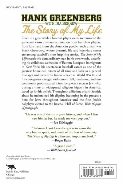 Once in a great while there appears a baseball player who transcends the game and earns universal admiration from his fellow players, from fans, and from the American people. Such a man was Hank Greenberg, whose dynamic life and legendary career are among baseball's most inspiring stories. The Story of My Life tells the story of this extraordinary man in his own words, describing his childhood as the son of Eastern European immigrants in New York; his spectacular baseball career as one of the greatest home-run hitters of all time and later as a manager and owner; his heroic service in World War II; and his courageous struggle with cancer. Tall, handsome, and uncommonly good-natured, Greenberg was a secular Jew who, during a time of widespread religious bigotry in America, stood up for his beliefs. Throughout a lifetime of anti-Semitic abuse he maintained his dignity, becoming in the process a hero for Jews throughout America and the first Jewish ballplayer elected to the Baseball Hall of Fame.