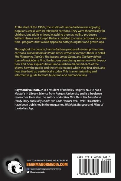 At the start of the 1960s, the studio of Hanna-Barbera was enjoying popular success with its television cartoons. They were theoretically for children, but adults enjoyed watching them as well so producers William Hanna and Joseph Barbera decided to create cartoons for prime time- programs that would appeal to both youngsters and grown-ups. Throughout the decade, Hanna-Barbera produced several prime-time cartoons. Hanna Barbera's Prime Time Cartoons examines them in detail - The Flintstones, Top Cat, The Jetsons, Jonny Quest, and The New Adventures of Huckleberry Finn, the last one combining animation with live-action. This book explains how Hanna-Barbera marketed each of the shows, how the public and the critics reacted when they first aired, and how they hold up aesthetically today. This is an entertaining and informative guide for both television and animation fans. Raymond Valinoti, Jr. is a resident of Berkeley Heights, NJ. He has a Master's in Library Science from Rutgers University and is a freelance researcher. He is also the author of Another Nice Mess: The Laurel and Hardy Story and Hollywood's Pre-Code Horrors 1931-1934. His articles have been published in the magazines Midnight Marquee and Films of the Golden Age.