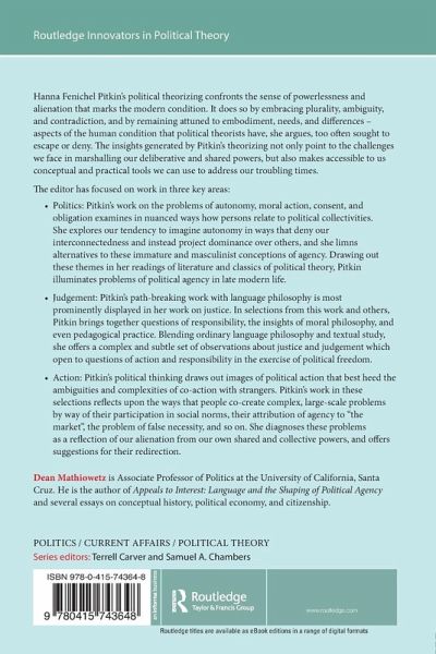 Hanna Fenichel Pitkin has made key contributions to the field of political philosophy, pushing forward and clarifying the ways that political theorists think about action as the exercise of political freedom. In so doing, she has offered insightful studies of the problems of modern politics that theorists are called to address, and has addressed them herself in a range of theoretical genres.. This collection of her works approaches each of these dimensions of Pitkin's contributions in turn: