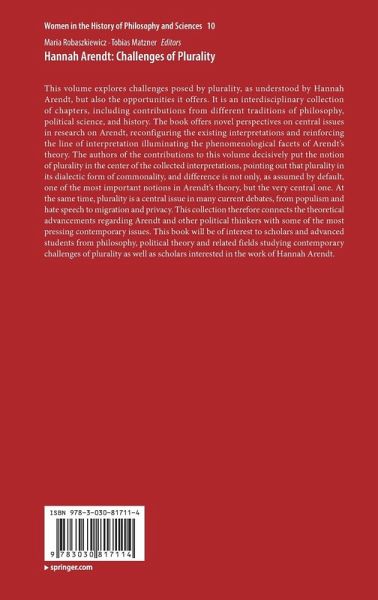 This volume explores challenges posed by plurality, as understood by Hannah Arendt, but also the opportunities it offers. It is an interdisciplinary collection of chapters, including contributions from different traditions of philosophy, political science, and history. The book offers novel perspectives on central issues in research on Arendt, reconfiguring the existing interpretations and reinforcing the line of interpretation illuminating the phenomenological facets of Arendt's theory.
