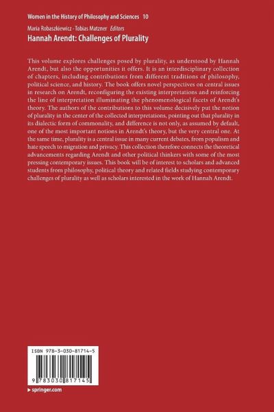 This volume explores challenges posed by plurality, as understood by Hannah Arendt, but also the opportunities it offers. It is an interdisciplinary collection of chapters, including contributions from different traditions of philosophy, political science, and history. The book offers novel perspectives on central issues in research on Arendt, reconfiguring the existing interpretations and reinforcing the line of interpretation illuminating the phenomenological facets of Arendt's theory.