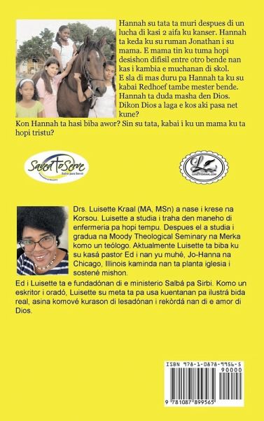 Danki na Dios ku a inspirá mi pa ta un eskritor. Dios a habri mi wowo pa e nesesidat di nos muchanan. Bida a bira hopi mas duru pa muchanan den e tempu ku nos ta biba aden aki. Muchanan tin ku dil ku hopi pèrdida i ferdrit, tin bia sin un sistema di sosten grandi rondó di nan i sin ku nan por papia i deshogá nan mes. Mi orashon ta pa hopi mucha por rekonosé strategia pa dil ku pèrdida i ferdrit den bida siguiendo e lucha ku Hannah a hiba den e buki aki. Un danki ta bai na mi amigunan ku a sa di kere den mi i sostené mi ora mi kier a hasi mi soño di skibi bira bèrdat. Den e lunanan ku a pasa Hannah a bira manera un yu muhé di mi den kas. Un danki ta bai na mi amiganan di kurason Jenny, Jefka, Arelis i Sylvia pa yuda mi lesa i koregí e teksto. Tambe mi amigu chikínan en espesial e "speshalista" den lesamentu Teffy. Un danki ta bai pa e persona ku a hasi tur e kosnan aki posibel ku ta mi mama Diana. For di chikí el a kore bai tur marshe di pruga ku mi pa kumpra kaha di buki pa mi lesa i semper el a insistí pa mi lesa korant. Ku awe mi por skibi ta pasobra na mucha mi a lesa. I por último mi kerido kasá Ed ku a hasi tur su posibel pa sostené mi i adoptá Hannah komo yu, pa awe boso por mira "Hannah i su kabai" boso dilanti. Un danki na mi yunan Timothy, Bryan i Jo-Hanna ku a biba ku mi tur e oranan ku mi mester a dediká na skibi i koregí. Hannah a bira nan ruman tambe. Mi no ke keda sin bisa danki na e papiamentistanan RoseMary Keli, Irene Dick i Barche Baromeo. Tambe danki na Kas di Kultura ku a enkurashá mi pa skibi na papiamentu, asta ora e tabata parse difisil. Un danki na Jules Marchena ku a tuma tempu pa splika mi regla nan di skibi papiamentu i na e grupo literario ku ta reuni un bia pa luna serka Jules. Danki pa skucha mi i yuda mi pensa. Un danki speshal tambe na e modelo kabai Rosie ku su doño Kaydee Chang i su amiganan. Sin boso tur su yudansa e manuskrito aki lo no a kaba. Ta p'esei na tur tur hende un DANKI.