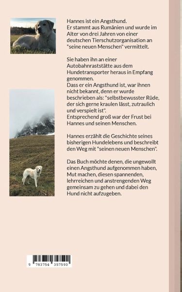 Hannes ist ein Angsthund.Er stammt aus Rumänien und wurde im Alter von drei Jahren von einer deutschen Tierschutzorganisation an "seine neuen Menschen" vermittelt.Sie haben ihn an einer Autobahnraststätte aus dem Hundetransporter heraus in Empfang genommen.Dass er ein Angsthund ist, war ihnen nicht bekannt, denn er wurde beschrieben als: "selbstbewusster Rüde, der sich gerne kraulen lässt, zutraulich und verspielt ist".Entsprechend groß war der Frust bei Hannes und seinen Menschen.Hannes erzählt die Geschichte seines bisherigen Hundelebens und beschreibt den Weg mit "seinen neuen Menschen".Das Buch möchte denen, die ungewollt einen Angsthund aufgenommen haben, Mut machen, diesen spannenden, lehrreichen und anstrengenden Weg gemeinsam zu gehen und dabei den Hund nicht aufzugeben.