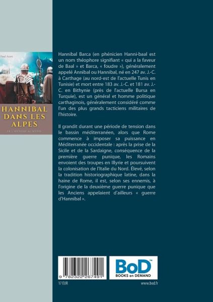 Hannibal Barca (en phénicien Hanni-baal est un nom théophore signifiant « qui a la faveur de Baal » et Barca, « foudre »), généralement appelé Annibal ou Hannibal, né en 247 av. J.-C. à Carthage (au nord-est de l'actuelle Tunis en Tunisie) et mort entre 183 av. J.-C. et 181 av. J.-C. en Bithynie (près de l'actuelle Bursa en Turquie), est un général et homme politique carthaginois, généralement considéré comme l'un des plus grands tacticiens militaires de l'histoire.Il grandit durant une période de tension dans le bassin méditerranéen, alors que Rome commence à imposer sa puissance en Méditerranée occidentale : après la prise de la Sicile et de la Sardaigne, conséquence de la première guerre punique, les Romains envoient des troupes en Illyrie et poursuivent la colonisation de l'Italie du Nord. Élevé, selon la tradition historiographique latine, dans la haine de Rome, il est, selon ses ennemis, à l'origine de la deuxième guerre punique que les Anciens appelaient d'ailleurs « guerre d'Hannibal ».À la fin de l'année 218 av. J.-C., il quitte l'Espagne avec son armée et traverse les Pyrénées, puis les Alpes pour gagner le Nord de l'Italie. Pourtant, il ne parvient pas à prendre Rome. Selon certains historiens, Hannibal ne possède alors pas le matériel nécessaire à l'attaque et au siège de la ville6.Pour John Francis Lazenby, ce ne serait pas le manque d'équipements, mais celui de ravitaillement et son ambition politique qui empêchent Hannibal d'attaquer la cité7. Néanmoins, il réussit à maintenir une armée en Italie durant plus d'une décennie sans toutefois parvenir à imposer ses conditions aux Romains. Une contre-attaque de ces derniers le force à retourner à Carthage où il est finalement défait à la bataille de Zama, en 202 av. J.-C.L'historien militaire Theodore Ayrault Dodge lui donne le surnom de « père de la stratégie » du fait que son plus grand ennemi, Rome, adopte par la suite des éléments de sa tactique militaire dans son propre arsenal stratégique. Cet héritage lui confère une réputation forte dans le monde contemporain où il est considéré comme un grand stratège par des militaires, tels que Napoléon Ier et le duc de Wellington. Sa vie sert plus tard de trame à de nombreux films et documentaires.