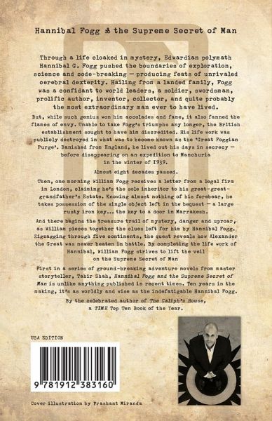 Through a life cloaked in mystery, Edwardian polymath Hannibal G. Fogg pushed the boundaries of exploration, science and code-breaking – producing feats of unrivaled cerebral dexterity. Hailing from a landed family, Fogg was a confidant to world leaders, a soldier, swordsman, prolific author, inventor, collector, and quite probably the most extraordinary man ever to have lived. But, while such genius won him accolades and fame, it also fanned the flames of envy. Unable to take Fogg’s triumphs any longer, the British establishment sought to have him discredited. His life work was publicly destroyed in what was to become known as the ‘Great Foggian Purge’. Banished from England, he lived out his days in secrecy – before disappearing on an expedition to Manchuria in the winter of 1939. Almost eight decades passed. Then, one morning William Fogg receives a letter from a legal firm in London, claiming he’s the sole inheritor to his great-great-grandfather’s Estate. Knowing almost nothing of his forebear, he takes possession of the single object left in the bequest – a large rusty iron key… the key to a door in Marrakesh. And there begins the treasure trail of mystery, danger and uproar, as William pieces together the clues left for him by Hannibal Fogg. Zigzagging through five continents, the quest reveals how Alexander the Great was never beaten in battle. By completing the life work of Hannibal, William Fogg strives to lift the veil on the Supreme Secret of Man. First in a series of ground-breaking adventure novels from master storyteller, Tahir Shah, Hannibal Fogg and the Supreme Secret of Man is unlike anything published in recent times. Ten years in the making, it’s as worldly and wise as the indefatigable Hannibal Fogg. By the celebrated author of The Caliph’s House, a TIME Top Ten Book of the Year.