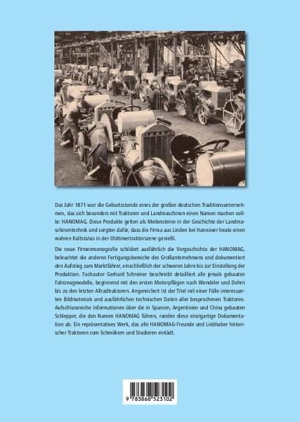 Das Standardwerk über HANOMAG!Das Jahr 1871 war die Geburtsstunde eines der großen deutschen Traditionsunternehmen, das sich besonders mit Traktoren und Landmaschinen einen Namen machen sollte: HANOMAG. Diese Produkte gelten als Meilensteine in der Geschichte der Landmaschinentechnik und sorgten dafür, dass die Firma aus Linden bei Hannover heute einen wahren Kultstatus in der Oldtimertraktorszene genießt.Die Firmenmonografie schildert ausführlich die Vorgeschichte der HANOMAG, beleuchtet die anderen Fertigungsbereiche des Großunternehmens und dokumentiert den Aufstieg zum Marktführer, einschließlich der schweren Jahre bis zur Einstellung der Produktion. Fachautor Gerhard Schreiner beschreibt detailliert alle jemals gebauten Fahrzeugmodelle, beginnend mit den ersten Motorpflügen nach Wendeler und Dohrn bis zu den letzten Allradtraktoren. Angereichert ist der Titel mit einer Fülle interessanten Bildmaterials und ausführlichen technischen Daten aller besprochenen Traktoren. Aufschlussreiche Informationen über die in Spanien, Argentinien und China gebauten Schlepper, die den Namen HANOMAG führen, runden diese einzigartige Dokumentation ab.Das ultimative und einzige Werk über HANOMAG und perfekte Geschenk für alle HANOMAG-Freunde und Liebhaber historischer Traktoren!