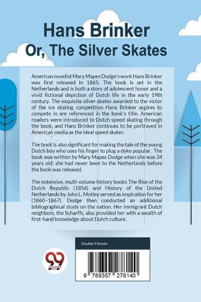 American novelist Mary Mapes Dodge's work Hans Brinker was first released in 1865. The book is set in the Netherlands and is both a story of adolescent honor and a vivid fictional depiction of Dutch life in the early 19th century. The exquisite silver skates awarded to the victor of the ice skating competition Hans Brinker aspires to compete in are referenced in the book's title. American readers were introduced to Dutch speed skating through the book, and Hans Brinker continues to be portrayed in American media as the ideal speed skater. The book is also significant for making the tale of the…mehr