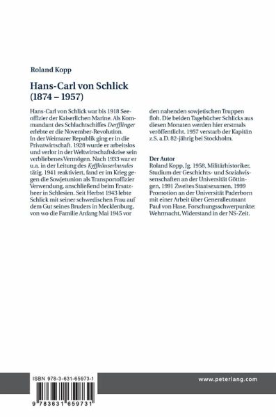Hans-Carl von Schlick war bis 1918 Seeoffizier der Kaiserlichen Marine. Als Kommandant des Schlachtschiffes Derfflinger erlebte er die November-Revolution. In der Weimarer Republik ging er in die Privatwirtschaft. 1928 wurde er arbeitslos und verlor in der Weltwirtschaftskrise sein verbliebenes Vermögen. Nach 1933 war er u.a. in der Leitung des Kyffhäuserbundes tätig. 1941 reaktiviert, fand er im Krieg gegen die Sowjetunion als Transportoffizier Verwendung, anschließend beim Ersatzheer in Schlesien. Seit Herbst 1943 lebte Schlick mit seiner schwedischen Frau auf dem Gut seines Bruders in Mecklenburg, von wo die Familie Anfang Mai 1945 vor den nahenden sowjetischen Truppen floh. Die beiden Tagebücher Schlicks aus diesen Monaten werden hier erstmals veröffentlicht. 1957 verstarb der Kapitän z.S. a.D. 82-jährig bei Stockholm.