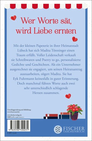 Mit der Papeterie im Herzen ihrer Heimatstadt hat sich Madita Tönninger einen lang gehegten Traum erfüllt. Voller Leidenschaft verkauft sie ihren Kundinnen und Kunden die mit eigenen Zeilen beschriebenen Produkte. Außerdem übernimmt sie Auftragsarbeiten, verfasst personalisierte Gedichte und Geschichten. Als ein bekannter Unternehmer und ehemaliger Mitschüler ausgerechnet sie engagiert, um die passenden Worte für seinen Heiratsantrag zu formulieren, fällt Madita aus allen Wolken. Da sich die Rechnungen auf ihrem Tisch stapeln, willigt sie dennoch ein - und muss feststellen, dass Worte die Kraft besitzen, selbst zwei sehr unterschiedlich schlagende Herzen zusammenzuführen.